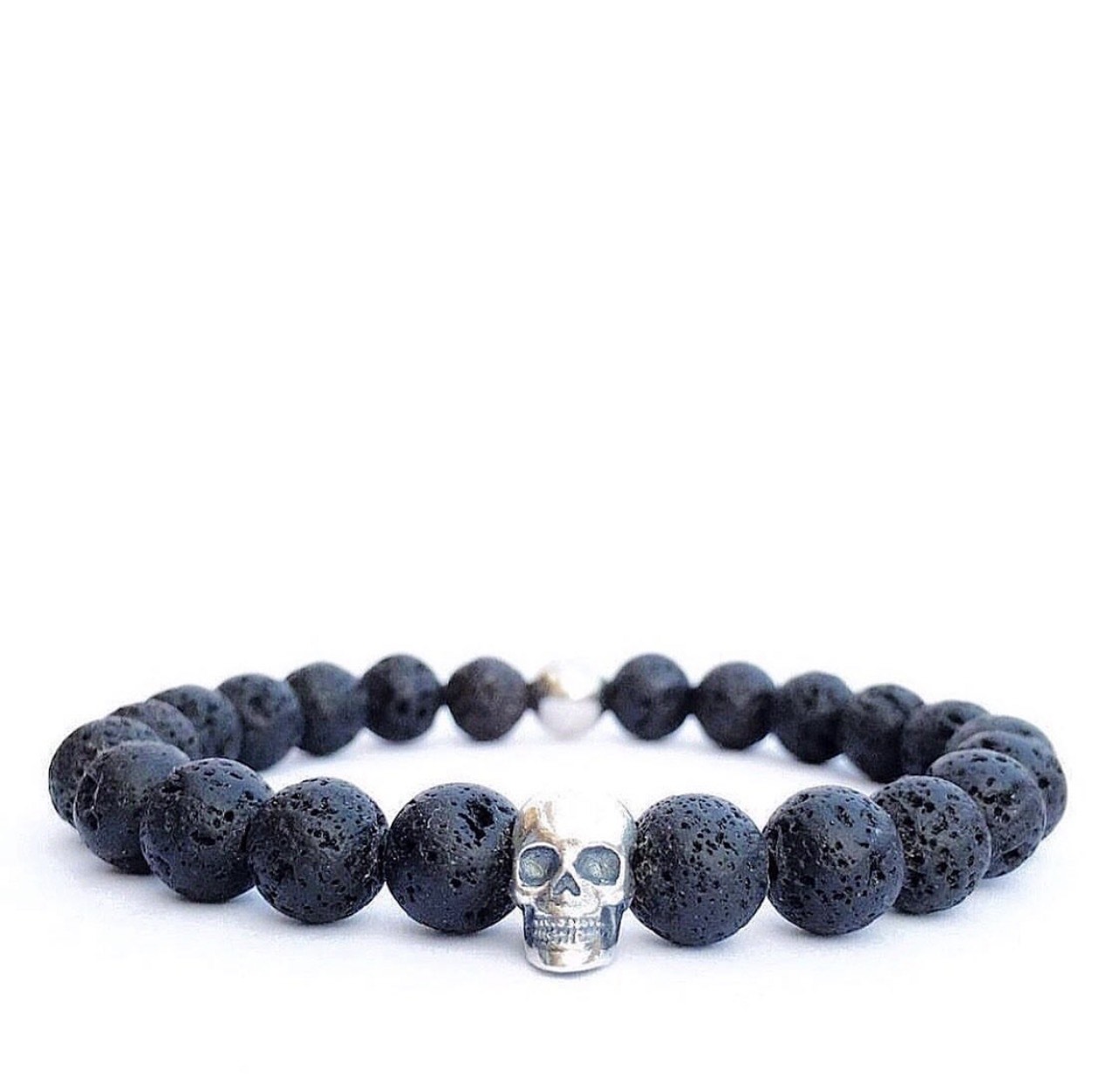 Silver Skull Black Lava Bracelet