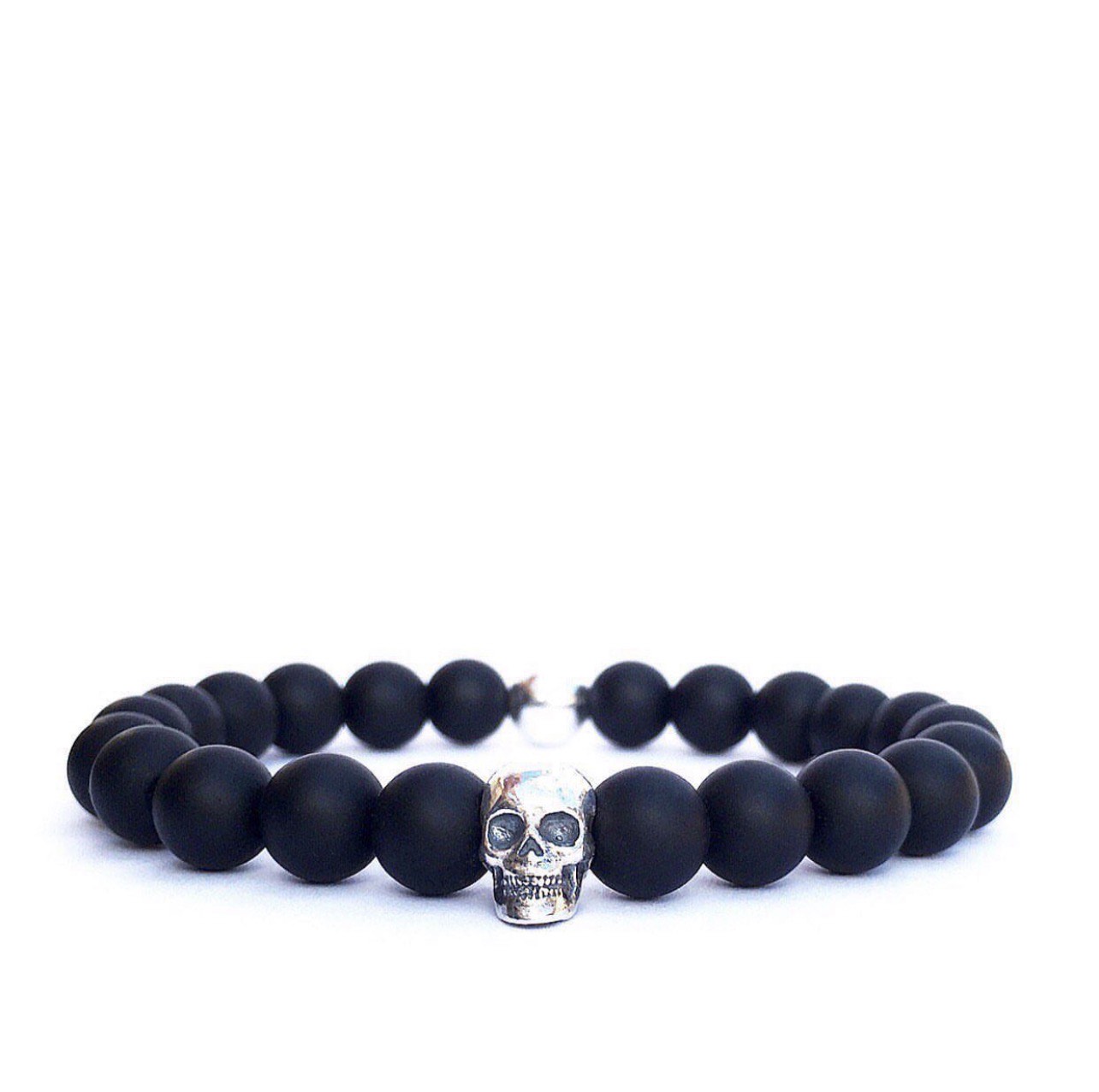 Silver Skull Onyx Bracelet
