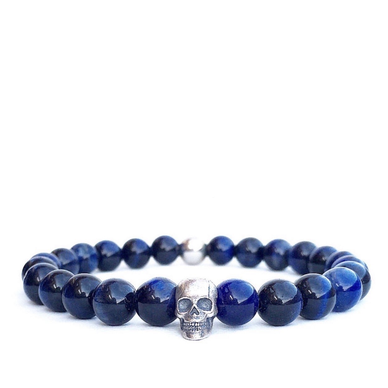 Silver Skull Blue Tiger Eye Bracelet