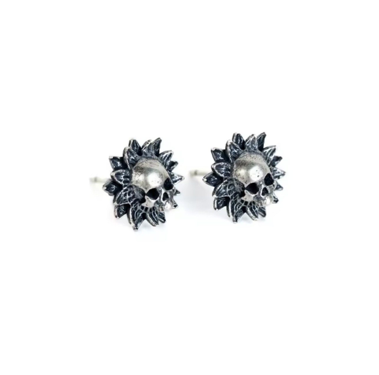 925 Sterling Silver Flower Skull Earrings